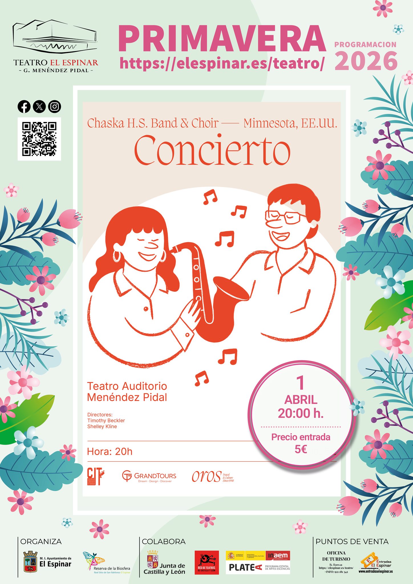 A las 20:00h; en el Auditorio G. Menéndez Pidal Concierto de la Chaska High School Banda y Coro. Esta visita desde el otro lado del Atlántico es una oportunidad perfecta para los amantes de la música.