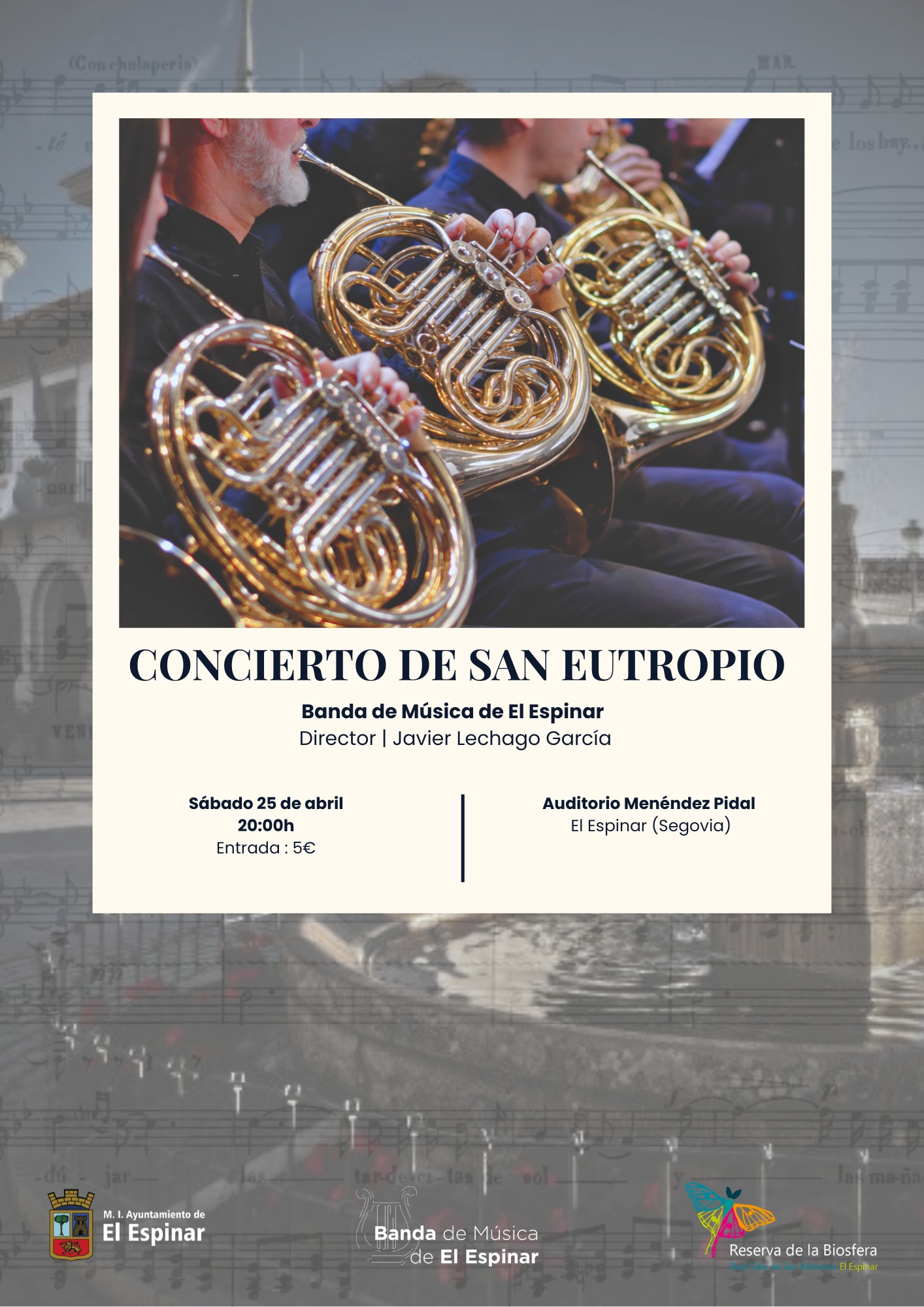 Con motivo de la celebración de la Festividad de San Eutropio, Patrón de El Espinar, la Banda de Música de El Espinar realizará un concierto en su honor.