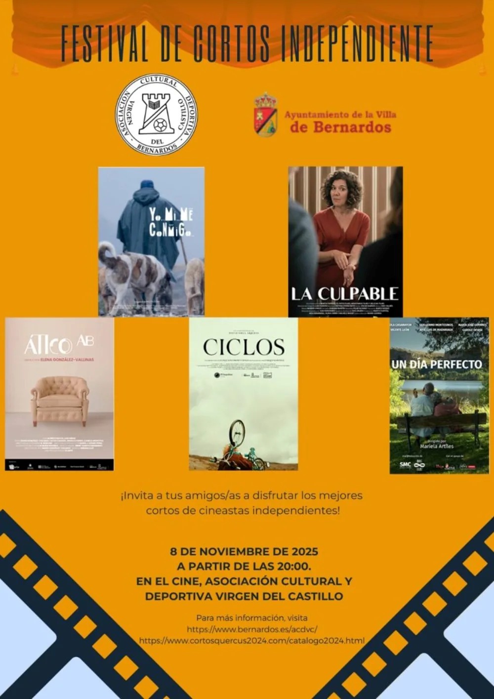 El próximo 8 de noviembre, a partir de las 20:00 horas, la Asociación Cultural y Deportiva Virgen del Castillo de Bernardos se convertirá en punto de encuentro para los amantes del cine con la proyección de una selección de los mejores cortometrajes de Castilla y León, dentro del Proyecto Quercus.