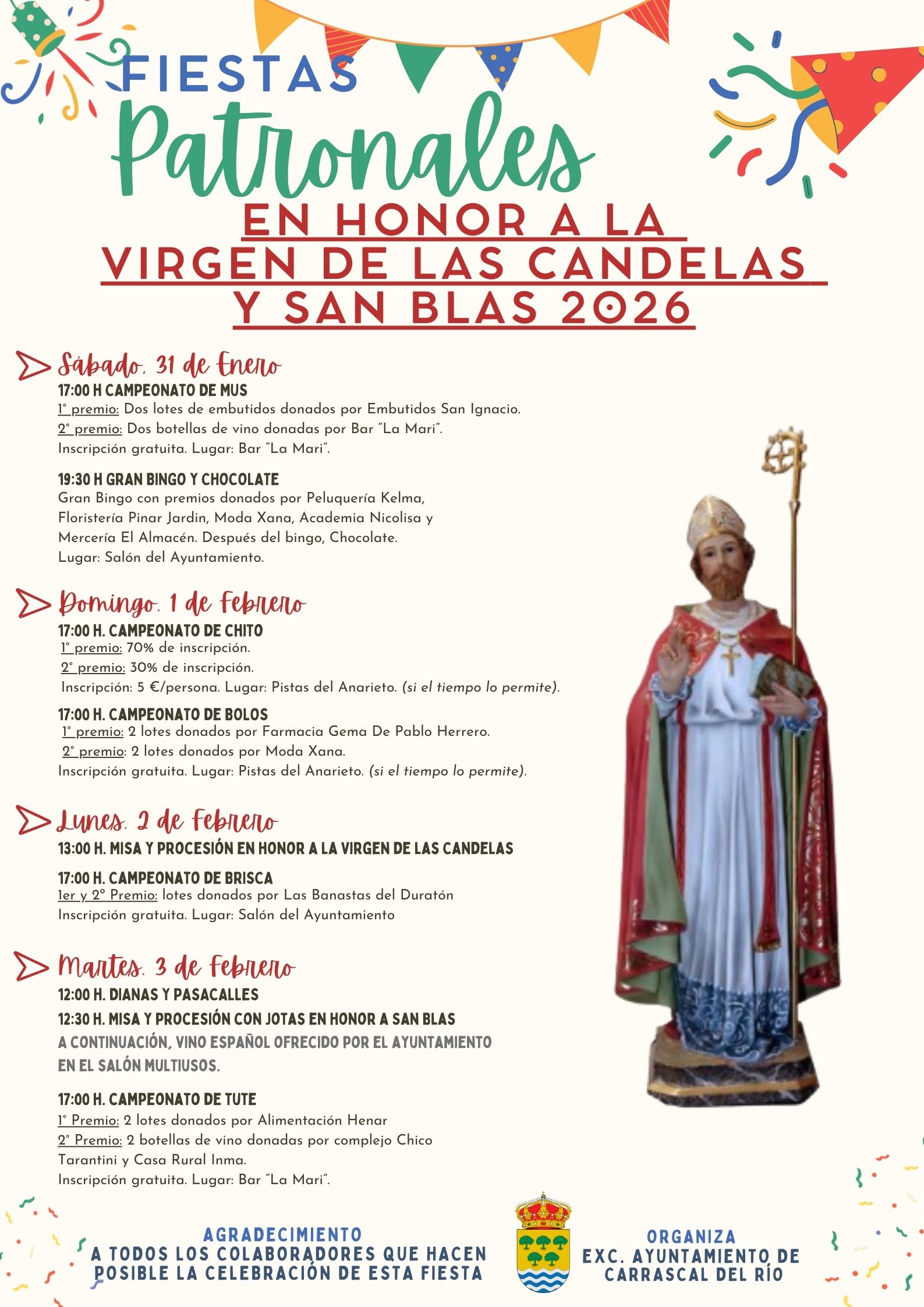 Del 31 de enero al 3 de febrero de 2026, celebramos en honor a la Virgen de las Candelas y San Blas