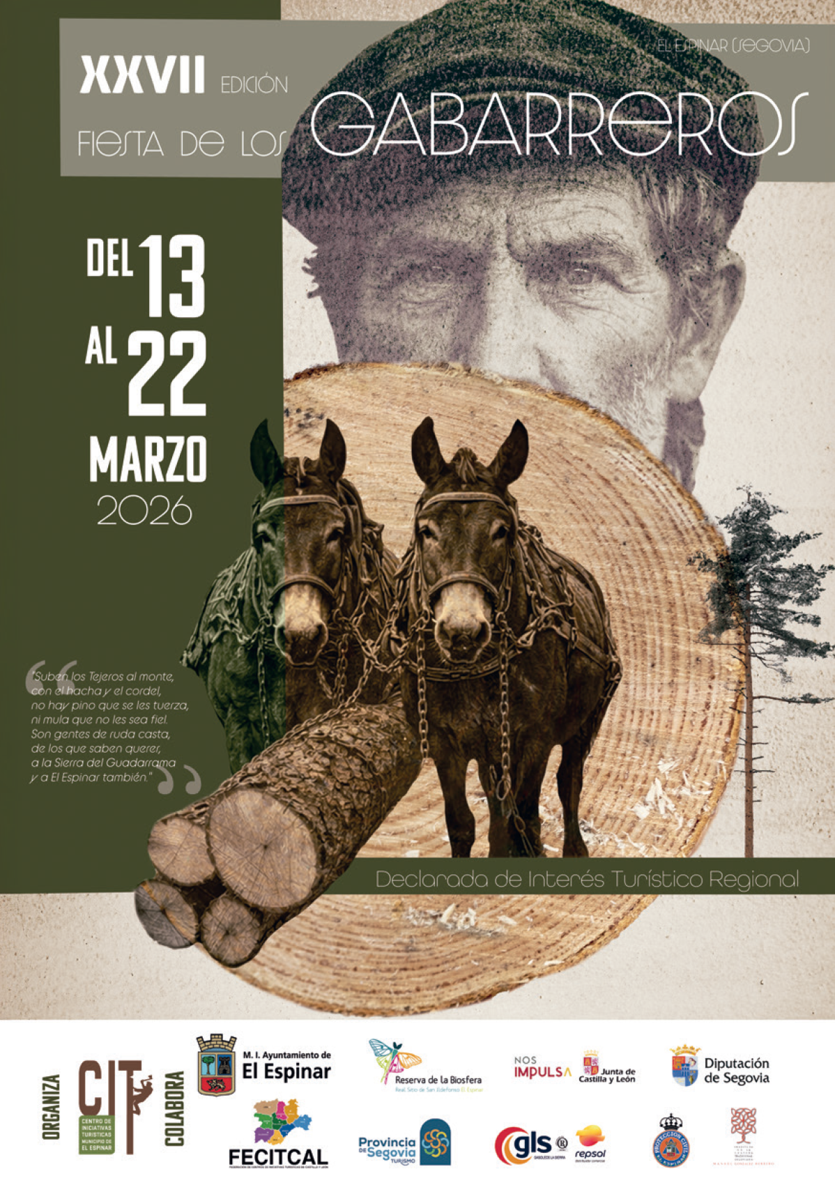 La Fiesta de los Gabarreros celebrará del 13 al 22 de marzo su vigesimoséptima edición en El Espinar, consolidada como una de las citas más representativas del calendario cultural segoviano y reconocida como Fiesta de Interés Turístico Regional. Durante diez días, el municipio volverá a rendir homenaje al oficio forestal tradicional, al trabajo en el monte y al carácter serrano que ha definido su identidad durante generaciones.