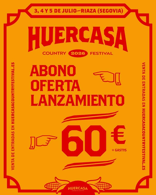 Los abonos ciegos ya están disponibles a precio especial de 60€ (+ gastos), por tiempo limitado y hasta agotar existencias, en https://huercasacountryfestival.es/