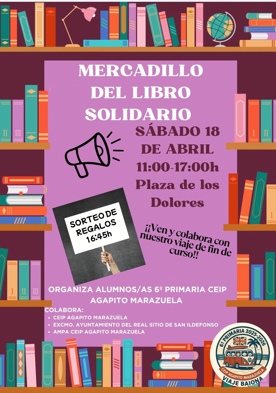 De 11:00 a 17:00h.- MERCADILLO DEL LIBRO SOLIDARIO. Plaza de los Dolores.
