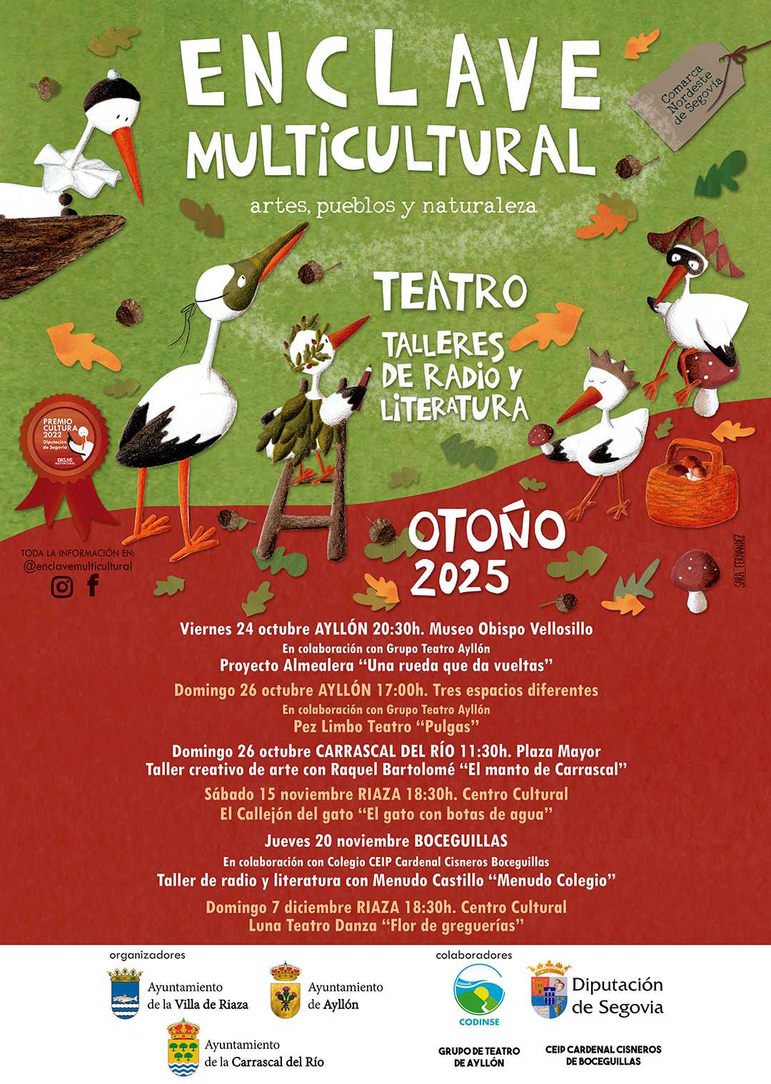 Una selección que pretende ampliar conocimiento hacia diferentes formatos teatrales dirigidos tanto a público infantil, como juvenil o adulto. El arte y la literatura también estarán presentes de una forma muy especial aprovechando la festividad de San Frutos en Carrascal del Río y con la participación del colegio CEIP Cardenal Cisneros de Boceguillas.