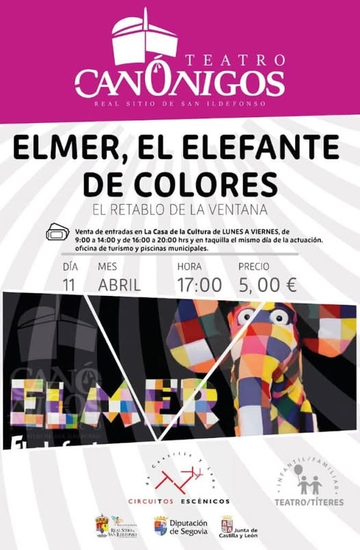 TEATRO INFANTIL “ELMER, EL ELEFANTE DE COLORES” en el Teatro Canónigos. Compañía El Retablo de la Ventana.