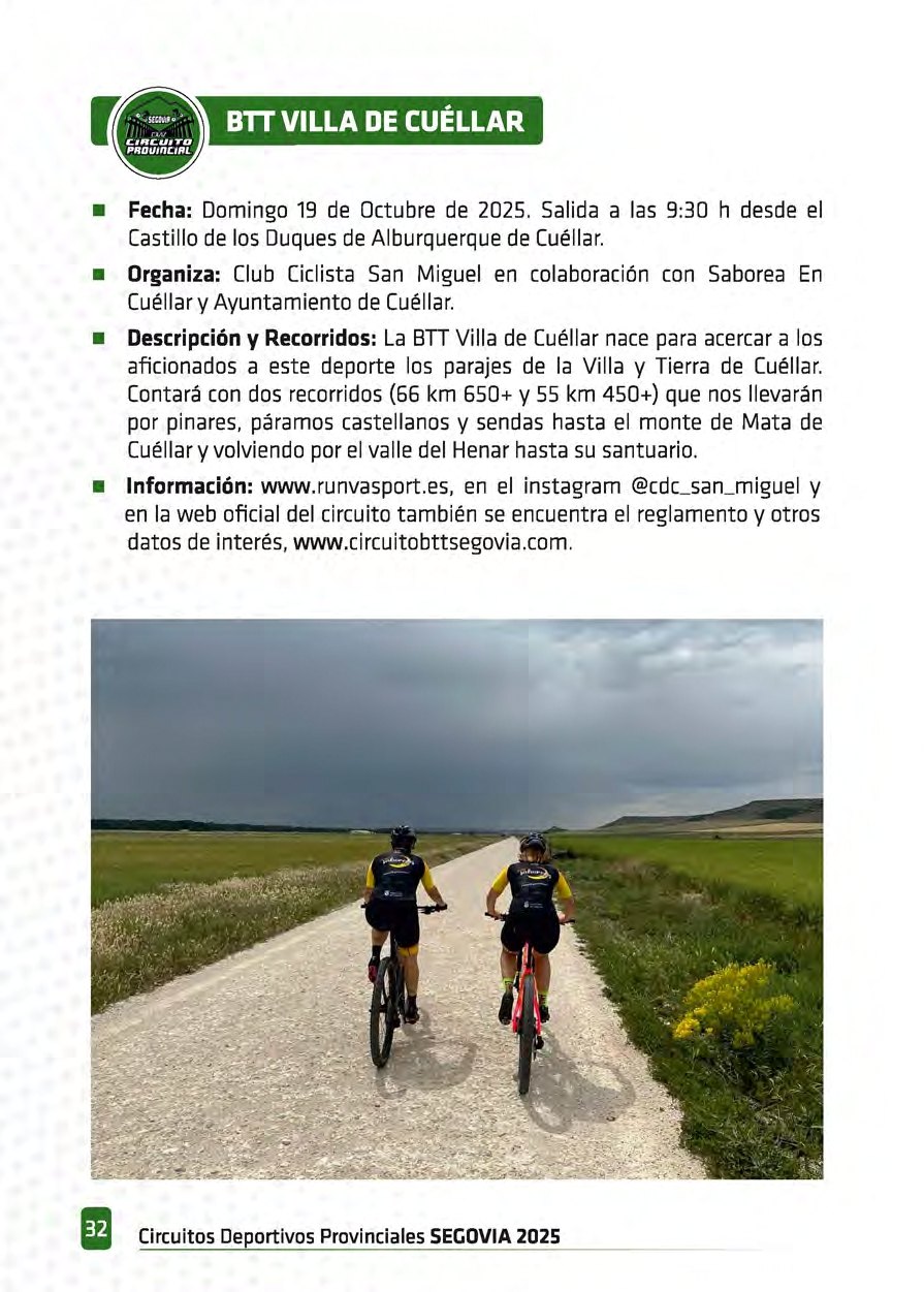 Durante el presente año 2025, el circuito provincial de BTT se desarrollará conforme al siguiente calendario: