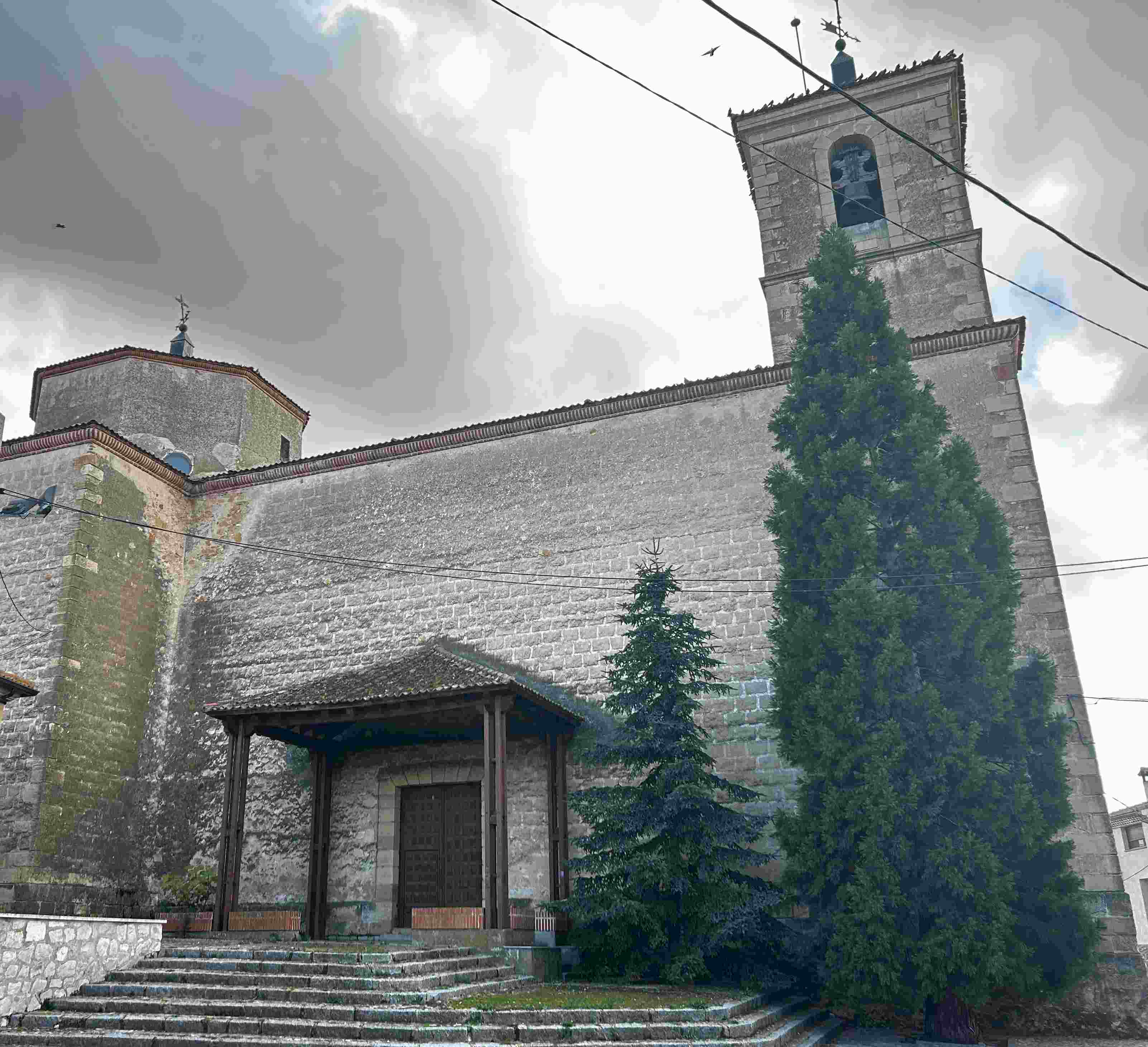 La Iglesia actual se levantó sobre una anterior románica que fue derruida en 1780, fecha que aparece en el arco de entrada. Se construyó en tres fases, en la primera, la nave de estilo barroco y la planta de cruz latina con cúpula en el crucero. Luego la torre, suelos y molduras. En la última se remata la decoración de cornisas y solado.