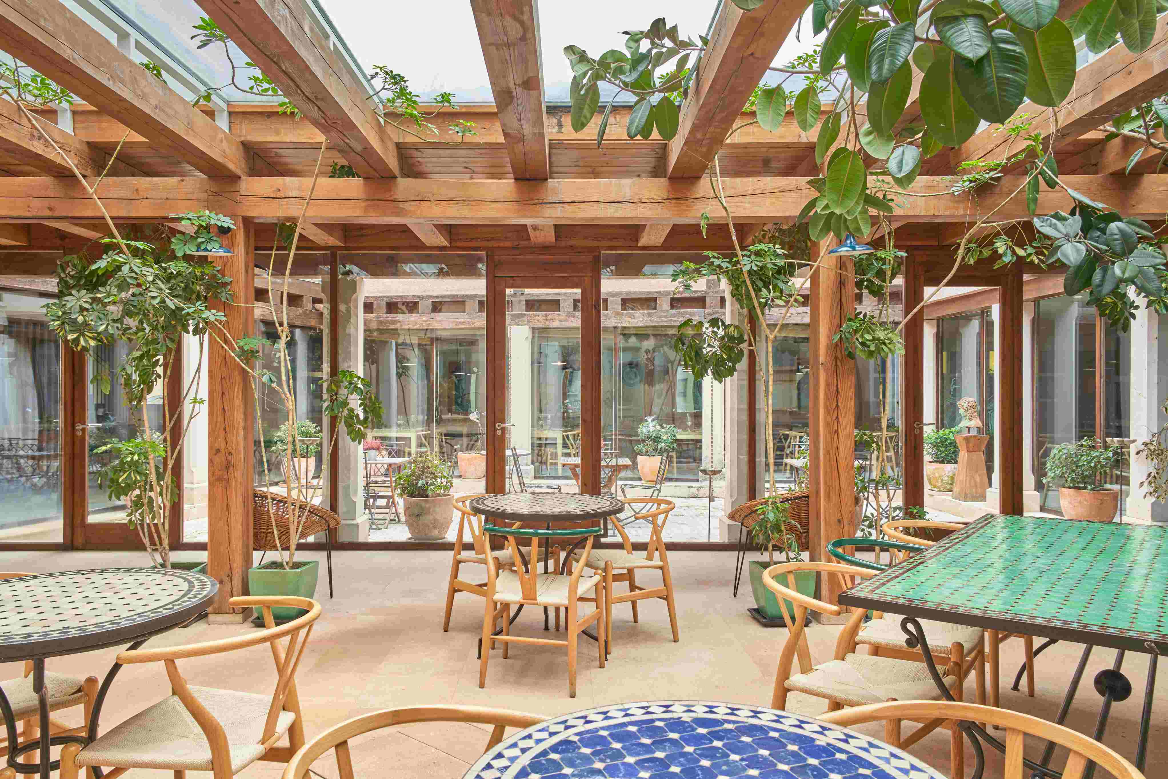 Carpinterías de madera en amplios ventanales y balcones, junto con las paredes y la lencería blanca, hacen del hotel un espacio luminoso y confortable. Todas las habitaciones cuentan con un amplio espacio para el descanso, con vistas que, bien a través de balcones, terrazas o buhardillas, se vuelcan al patio ajardinado o al Casco Histórico. Madera, mármol carrara y formas limpias caracterizan las habitaciones.