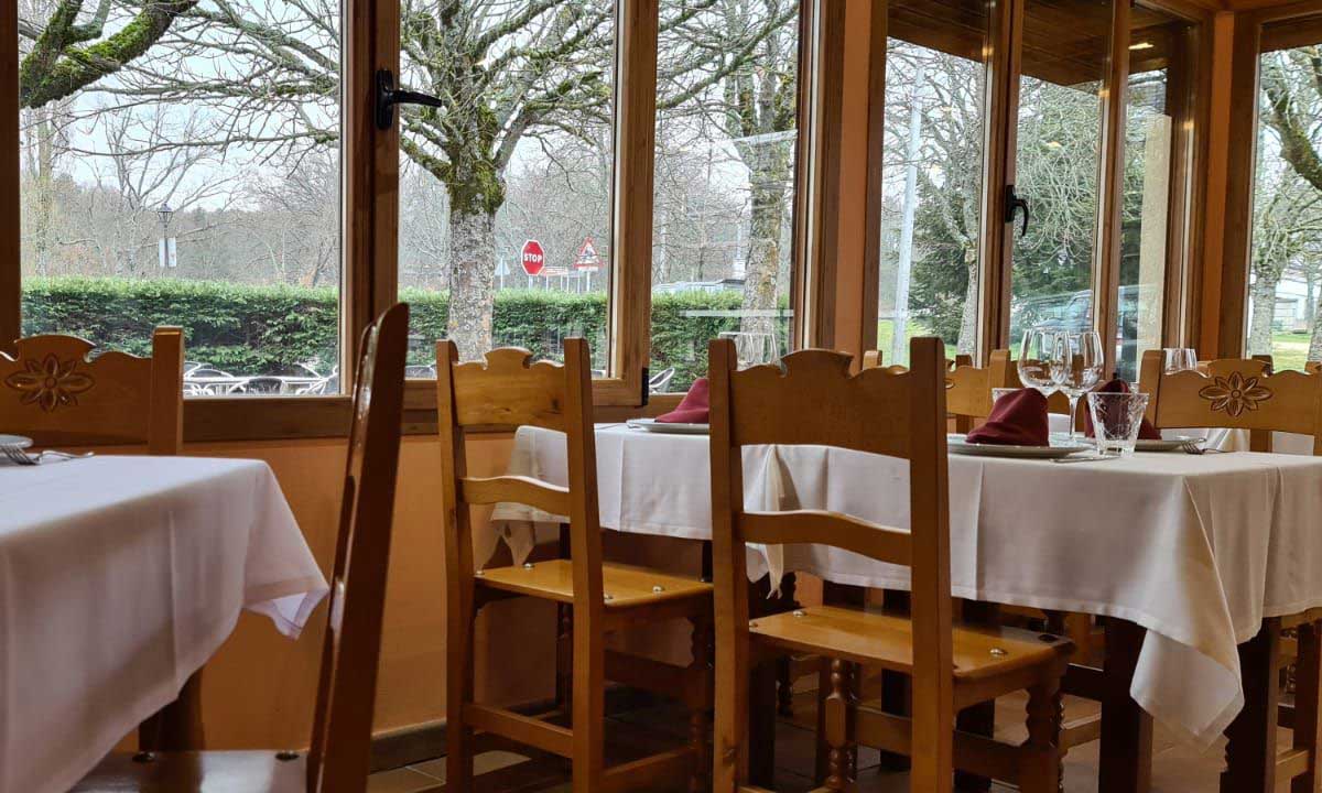 Tenemos una amplia terraza arbolada ideal para disfrutar de las agradables temperaturas que el bosque y montaña circundantes proporcionan en los meses estivales. Cuando la nieve y la belleza del invierno de nuestros paisajes es lo que te trae por estos lugares, tenemos un comedor cerrado con chimenea donde disfrutar de buena comida castellana y calentar el cuerpo por dentro y por fuera.