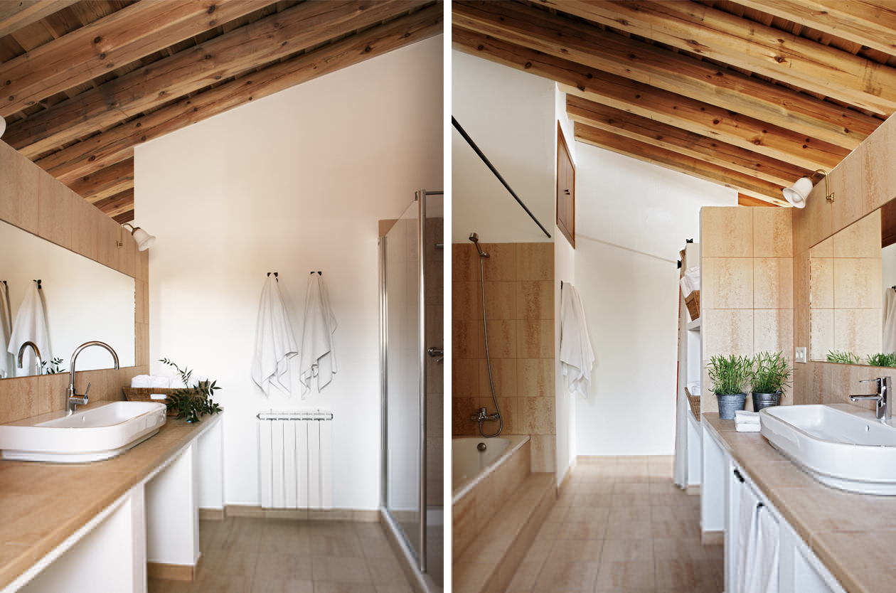 Casa con dos suites familiares de 30m2 cada una. Ideal para que los padres estén con sus hijos en la misma habitación. Una de las casas rurales que dan al jardín y a la piscina.