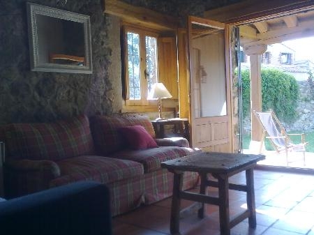 LA CASITA ANEXA (o casita de la chimenea)- Casita con encanto para 2 personas (o una pareja con niños). Con 75m2,tiene un espacioso dormitorio abuhardillado de techos altos de madera en la planta alta con cama de matrimonio y cama individual, baño, cocina-comedor, salón con chimenea (con sofá-cama), porche exterior con mesa para comer y zona de jardín.